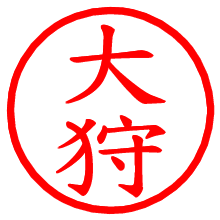 [朱肉の色]を選び、入力窓に“大狩”と入力して[生成]ボタンを押すと、印影が更新され、リンクから電子印鑑(デジタル印影)がダウンロードできます。 電子印鑑「大狩」の作り方文字表示が変なときや、文字バランスが悪いときは[字形切替]のチェックボックスでON/OFFを切り替え[生成]しなおしてください。 生成される画像は通常の印影「大狩.png」と、にじみを表現した少し太めの印影「大狩B.png」の背面透過PNG形式2種と、鮮明なPDF形式の印影「大狩.pdf」の計3種類です。 朱肉の微妙な色の違いを7色で表現しました。デフォルト(左端)は、JISが定めた朱肉の色のマンセル値(7.5R 5/14)をRGB値(217,66,54)に変換したものになっています。 「電子透かし」にチェックを入れて[生成]ボタンを押すと、タイムスタンプを透かしとして埋め込んだセキュアな電子印鑑が作れます。詳細は別ページの「電子透かしとタイムスタンプ」でご覧ください。 大狩さんの日付印が作れます。「日付スタンプメーカー」は、社内向けの書類に利用されることの多い日付印(データ印)が無料で作れるWebアプリケーションです。中段に日付が入り、上段と下段は、ともに8文字まで文字が入ります。 ![]() 古代文字で落款印が作れます。「落款スタンプメーカー」で作品を引き立たせる落款印が作れます。