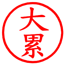 [朱肉の色]を選び、入力窓に“大累”と入力して[生成]ボタンを押すと、印影が更新され、リンクから電子印鑑(デジタル印影)がダウンロードできます。 電子印鑑「大累」の作り方文字表示が変なときや、文字バランスが悪いときは[字形切替]のチェックボックスでON/OFFを切り替え[生成]しなおしてください。 生成される画像は通常の印影「大累.png」と、にじみを表現した少し太めの印影「大累B.png」の背面透過PNG形式2種と、鮮明なPDF形式の印影「大累.pdf」の計3種類です。 朱肉の微妙な色の違いを7色で表現しました。デフォルト(左端)は、JISが定めた朱肉の色のマンセル値(7.5R 5/14)をRGB値(217,66,54)に変換したものになっています。 「電子透かし」にチェックを入れて[生成]ボタンを押すと、タイムスタンプを透かしとして埋め込んだセキュアな電子印鑑が作れます。詳細は別ページの「電子透かしとタイムスタンプ」でご覧ください。 大累さんの日付印が作れます。「日付スタンプメーカー」は、社内向けの書類に利用されることの多い日付印(データ印)が無料で作れるWebアプリケーションです。中段に日付が入り、上段と下段は、ともに8文字まで文字が入ります。 ![]() 古代文字で落款印が作れます。「落款スタンプメーカー」で作品を引き立たせる落款印が作れます。