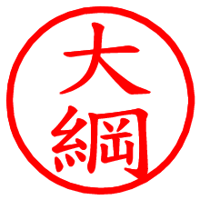 [朱肉の色]を選び、入力窓に“大綱”と入力して[生成]ボタンを押すと、印影が更新され、リンクから電子印鑑(デジタル印影)がダウンロードできます。 電子印鑑「大綱」の作り方文字表示が変なときや、文字バランスが悪いときは[字形切替]のチェックボックスでON/OFFを切り替え[生成]しなおしてください。 生成される画像は通常の印影「大綱.png」と、にじみを表現した少し太めの印影「大綱B.png」の背面透過PNG形式2種と、鮮明なPDF形式の印影「大綱.pdf」の計3種類です。 朱肉の微妙な色の違いを7色で表現しました。デフォルト(左端)は、JISが定めた朱肉の色のマンセル値(7.5R 5/14)をRGB値(217,66,54)に変換したものになっています。 「電子透かし」にチェックを入れて[生成]ボタンを押すと、タイムスタンプを電子透かしとして埋め込んだセキュアな電子印鑑が作れます。詳細は別ページの「タイムスタンプと電子透かし」でご覧ください。 大綱さんの日付印が作れます。「日付スタンプメーカー」は、社内向けの書類に利用されることの多い日付印(データ印)が無料で作れるWebアプリケーションです。中段に日付が入り、上段と下段は、ともに8文字まで文字が入ります。 ![]() 古代文字で落款印が作れます。「落款スタンプメーカー」で作品を引き立たせる落款印が作れます。