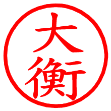 [朱肉の色]を選び、入力窓に“大衡”と入力して[生成]ボタンを押すと、印影が更新され、リンクから電子印鑑(デジタル印影)がダウンロードできます。 電子印鑑「大衡」の作り方文字表示が変なときや、文字バランスが悪いときは[字形切替]のチェックボックスでON/OFFを切り替え[生成]しなおしてください。 生成される画像は通常の印影「大衡.png」と、にじみを表現した少し太めの印影「大衡B.png」の背面透過PNG形式2種と、鮮明なPDF形式の印影「大衡.pdf」の計3種類です。 朱肉の微妙な色の違いを7色で表現しました。デフォルト(左端)は、JISが定めた朱肉の色のマンセル値(7.5R 5/14)をRGB値(217,66,54)に変換したものになっています。 「電子透かし」にチェックを入れて[生成]ボタンを押すと、タイムスタンプを電子透かしとして埋め込んだセキュアな電子印鑑が作れます。詳細は別ページの「タイムスタンプと電子透かし」でご覧ください。 大衡さんの日付印が作れます。「日付スタンプメーカー」は、社内向けの書類に利用されることの多い日付印(データ印)が無料で作れるWebアプリケーションです。中段に日付が入り、上段と下段は、ともに8文字まで文字が入ります。 ![]() 古代文字で落款印が作れます。「落款スタンプメーカー」で作品を引き立たせる落款印が作れます。