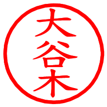 [朱肉の色]を選び、入力窓に“大谷木”と入力して[生成]ボタンを押すと、印影が更新され、リンクから電子印鑑(デジタル印影)がダウンロードできます。 電子印鑑「大谷木」の作り方文字表示が変なときや、文字バランスが悪いときは[字形切替]のチェックボックスでON/OFFを切り替え[生成]しなおしてください。 生成される画像は通常の印影「大谷木.png」と、にじみを表現した少し太めの印影「大谷木B.png」の背面透過PNG形式2種と、鮮明なPDF形式の印影「大谷木.pdf」の計3種類です。 朱肉の微妙な色の違いを7色で表現しました。デフォルト(左端)は、JISが定めた朱肉の色のマンセル値(7.5R 5/14)をRGB値(217,66,54)に変換したものになっています。 「電子透かし」にチェックを入れて[生成]ボタンを押すと、タイムスタンプを電子透かしとして埋め込んだセキュアな電子印鑑が作れます。詳細は別ページの「タイムスタンプと電子透かし」でご覧ください。 大谷木さんの日付印が作れます。「日付スタンプメーカー」は、社内向けの書類に利用されることの多い日付印(データ印)が無料で作れるWebアプリケーションです。中段に日付が入り、上段と下段は、ともに8文字まで文字が入ります。 ![]() 古代文字で落款印が作れます。「落款スタンプメーカー」で作品を引き立たせる落款印が作れます。