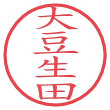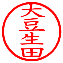 [朱肉の色]を選び、入力窓に“大豆生田”と入力して[生成]ボタンを押すと、印影が更新され、リンクから電子印鑑(デジタル印影)がダウンロードできます。 電子印鑑「大豆生田」の作り方文字表示が変なときや、文字バランスが悪いときは[字形切替]のチェックボックスでON/OFFを切り替え[生成]しなおしてください。 生成される画像は通常の印影「大豆生田.png」と、にじみを表現した少し太めの印影「大豆生田B.png」の背面透過PNG形式2種と、鮮明なPDF形式の印影「大豆生田.pdf」の計3種類です。 朱肉の微妙な色の違いを7色で表現しました。デフォルト(左端)は、JISが定めた朱肉の色のマンセル値(7.5R 5/14)をRGB値(217,66,54)に変換したものになっています。 「電子透かし」にチェックを入れて[生成]ボタンを押すと、タイムスタンプを電子透かしとして埋め込んだセキュアな電子印鑑が作れます。詳細は別ページの「タイムスタンプと電子透かし」でご覧ください。 大豆生田さんの日付印が作れます。「日付スタンプメーカー」は、社内向けの書類に利用されることの多い日付印(データ印)が無料で作れるWebアプリケーションです。中段に日付が入り、上段と下段は、ともに8文字まで文字が入ります。 ![]() 古代文字で落款印が作れます。「落款スタンプメーカー」で作品を引き立たせる落款印が作れます。
