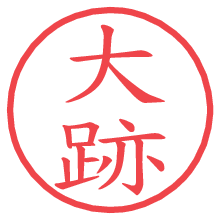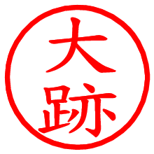 [朱肉の色]を選び、入力窓に“大跡”と入力して[生成]ボタンを押すと、印影が更新され、リンクから電子印鑑(デジタル印影)がダウンロードできます。 電子印鑑「大跡」の作り方文字表示が変なときや、文字バランスが悪いときは[字形切替]のチェックボックスでON/OFFを切り替え[生成]しなおしてください。 生成される画像は通常の印影「大跡.png」と、にじみを表現した少し太めの印影「大跡B.png」の背面透過PNG形式2種と、鮮明なPDF形式の印影「大跡.pdf」の計3種類です。 朱肉の微妙な色の違いを7色で表現しました。デフォルト(左端)は、JISが定めた朱肉の色のマンセル値(7.5R 5/14)をRGB値(217,66,54)に変換したものになっています。 「電子透かし」にチェックを入れて[生成]ボタンを押すと、タイムスタンプを電子透かしとして埋め込んだセキュアな電子印鑑が作れます。詳細は別ページの「タイムスタンプと電子透かし」でご覧ください。 大跡さんの日付印が作れます。「日付スタンプメーカー」は、社内向けの書類に利用されることの多い日付印(データ印)が無料で作れるWebアプリケーションです。中段に日付が入り、上段と下段は、ともに8文字まで文字が入ります。 ![]() 古代文字で落款印が作れます。「落款スタンプメーカー」で作品を引き立たせる落款印が作れます。