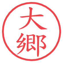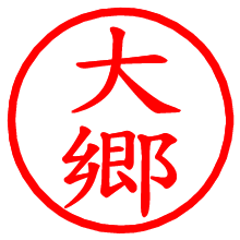 [朱肉の色]を選び、入力窓に“大郷”と入力して[生成]ボタンを押すと、印影が更新され、リンクから電子印鑑(デジタル印影)がダウンロードできます。 電子印鑑「大郷」の作り方文字表示が変なときや、文字バランスが悪いときは[字形切替]のチェックボックスでON/OFFを切り替え[生成]しなおしてください。 生成される画像は通常の印影「大郷.png」と、にじみを表現した少し太めの印影「大郷B.png」の背面透過PNG形式2種と、鮮明なPDF形式の印影「大郷.pdf」の計3種類です。 朱肉の微妙な色の違いを7色で表現しました。デフォルト(左端)は、JISが定めた朱肉の色のマンセル値(7.5R 5/14)をRGB値(217,66,54)に変換したものになっています。 「電子透かし」にチェックを入れて[生成]ボタンを押すと、タイムスタンプを電子透かしとして埋め込んだセキュアな電子印鑑が作れます。詳細は別ページの「タイムスタンプと電子透かし」でご覧ください。 大郷さんの日付印が作れます。「日付スタンプメーカー」は、社内向けの書類に利用されることの多い日付印(データ印)が無料で作れるWebアプリケーションです。中段に日付が入り、上段と下段は、ともに8文字まで文字が入ります。 ![]() 古代文字で落款印が作れます。「落款スタンプメーカー」で作品を引き立たせる落款印が作れます。