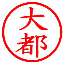 [朱肉の色]を選び、入力窓に“大都”と入力して[生成]ボタンを押すと、印影が更新され、リンクから電子印鑑(デジタル印影)がダウンロードできます。 電子印鑑「大都」の作り方文字表示が変なときや、文字バランスが悪いときは[字形切替]のチェックボックスでON/OFFを切り替え[生成]しなおしてください。 生成される画像は通常の印影「大都.png」と、にじみを表現した少し太めの印影「大都B.png」の背面透過PNG形式2種と、鮮明なPDF形式の印影「大都.pdf」の計3種類です。 朱肉の微妙な色の違いを7色で表現しました。デフォルト(左端)は、JISが定めた朱肉の色のマンセル値(7.5R 5/14)をRGB値(217,66,54)に変換したものになっています。 「電子透かし」にチェックを入れて[生成]ボタンを押すと、タイムスタンプを電子透かしとして埋め込んだセキュアな電子印鑑が作れます。詳細は別ページの「タイムスタンプと電子透かし」でご覧ください。 大都さんの日付印が作れます。「日付スタンプメーカー」は、社内向けの書類に利用されることの多い日付印(データ印)が無料で作れるWebアプリケーションです。中段に日付が入り、上段と下段は、ともに8文字まで文字が入ります。 ![]() 古代文字で落款印が作れます。「落款スタンプメーカー」で作品を引き立たせる落款印が作れます。