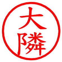 [朱肉の色]を選び、入力窓に“大隣”と入力して[生成]ボタンを押すと、印影が更新され、リンクから電子印鑑(デジタル印影)がダウンロードできます。 電子印鑑「大隣」の作り方文字表示が変なときや、文字バランスが悪いときは[字形切替]のチェックボックスでON/OFFを切り替え[生成]しなおしてください。 生成される画像は通常の印影「大隣.png」と、にじみを表現した少し太めの印影「大隣B.png」の背面透過PNG形式2種と、鮮明なPDF形式の印影「大隣.pdf」の計3種類です。 朱肉の微妙な色の違いを7色で表現しました。デフォルト(左端)は、JISが定めた朱肉の色のマンセル値(7.5R 5/14)をRGB値(217,66,54)に変換したものになっています。 「電子透かし」にチェックを入れて[生成]ボタンを押すと、タイムスタンプを電子透かしとして埋め込んだセキュアな電子印鑑が作れます。詳細は別ページの「タイムスタンプと電子透かし」でご覧ください。 大隣さんの日付印が作れます。「日付スタンプメーカー」は、社内向けの書類に利用されることの多い日付印(データ印)が無料で作れるWebアプリケーションです。中段に日付が入り、上段と下段は、ともに8文字まで文字が入ります。 ![]() 古代文字で落款印が作れます。「落款スタンプメーカー」で作品を引き立たせる落款印が作れます。