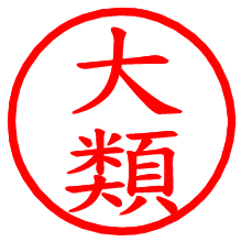 [朱肉の色]を選び、入力窓に“大類”と入力して[生成]ボタンを押すと、印影が更新され、リンクから電子印鑑(デジタル印影)がダウンロードできます。 電子印鑑「大類」の作り方文字表示が変なときや、文字バランスが悪いときは[字形切替]のチェックボックスでON/OFFを切り替え[生成]しなおしてください。 生成される画像は通常の印影「大類.png」と、にじみを表現した少し太めの印影「大類B.png」の背面透過PNG形式2種と、鮮明なPDF形式の印影「大類.pdf」の計3種類です。 朱肉の微妙な色の違いを7色で表現しました。デフォルト(左端)は、JISが定めた朱肉の色のマンセル値(7.5R 5/14)をRGB値(217,66,54)に変換したものになっています。 「電子透かし」にチェックを入れて[生成]ボタンを押すと、タイムスタンプを透かしとして埋め込んだセキュアな電子印鑑が作れます。詳細は別ページの「電子透かしとタイムスタンプ」でご覧ください。 大類さんの日付印が作れます。「日付スタンプメーカー」は、社内向けの書類に利用されることの多い日付印(データ印)が無料で作れるWebアプリケーションです。中段に日付が入り、上段と下段は、ともに8文字まで文字が入ります。 ![]() 古代文字で落款印が作れます。「落款スタンプメーカー」で作品を引き立たせる落款印が作れます。