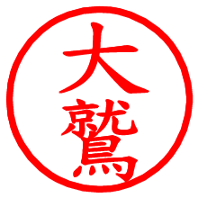 [朱肉の色]を選び、入力窓に“大鷲”と入力して[生成]ボタンを押すと、印影が更新され、リンクから電子印鑑(デジタル印影)がダウンロードできます。 電子印鑑「大鷲」の作り方文字表示が変なときや、文字バランスが悪いときは[字形切替]のチェックボックスでON/OFFを切り替え[生成]しなおしてください。 生成される画像は通常の印影「大鷲.png」と、にじみを表現した少し太めの印影「大鷲B.png」の背面透過PNG形式2種と、鮮明なPDF形式の印影「大鷲.pdf」の計3種類です。 朱肉の微妙な色の違いを7色で表現しました。デフォルト(左端)は、JISが定めた朱肉の色のマンセル値(7.5R 5/14)をRGB値(217,66,54)に変換したものになっています。 「電子透かし」にチェックを入れて[生成]ボタンを押すと、タイムスタンプを電子透かしとして埋め込んだセキュアな電子印鑑が作れます。詳細は別ページの「タイムスタンプと電子透かし」でご覧ください。 大鷲さんの日付印が作れます。「日付スタンプメーカー」は、社内向けの書類に利用されることの多い日付印(データ印)が無料で作れるWebアプリケーションです。中段に日付が入り、上段と下段は、ともに8文字まで文字が入ります。 ![]() 古代文字で落款印が作れます。「落款スタンプメーカー」で作品を引き立たせる落款印が作れます。