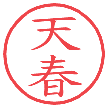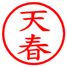 [朱肉の色]を選び、入力窓に“天春”と入力して[生成]ボタンを押すと、印影が更新され、リンクから電子印鑑(デジタル印影)がダウンロードできます。 電子印鑑「天春」の作り方文字表示が変なときや、文字バランスが悪いときは[字形切替]のチェックボックスでON/OFFを切り替え[生成]しなおしてください。 生成される画像は通常の印影「天春.png」と、にじみを表現した少し太めの印影「天春B.png」の背面透過PNG形式2種と、鮮明なPDF形式の印影「天春.pdf」の計3種類です。 朱肉の微妙な色の違いを7色で表現しました。デフォルト(左端)は、JISが定めた朱肉の色のマンセル値(7.5R 5/14)をRGB値(217,66,54)に変換したものになっています。 「電子透かし」にチェックを入れて[生成]ボタンを押すと、タイムスタンプを電子透かしとして埋め込んだセキュアな電子印鑑が作れます。詳細は別ページの「タイムスタンプと電子透かし」でご覧ください。 天春さんの日付印が作れます。「日付スタンプメーカー」は、社内向けの書類に利用されることの多い日付印(データ印)が無料で作れるWebアプリケーションです。中段に日付が入り、上段と下段は、ともに8文字まで文字が入ります。 ![]() 古代文字で落款印が作れます。「落款スタンプメーカー」で作品を引き立たせる落款印が作れます。