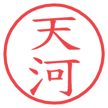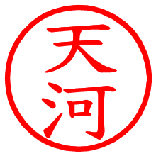 [朱肉の色]を選び、入力窓に“天河”と入力して[生成]ボタンを押すと、印影が更新され、リンクから電子印鑑(デジタル印影)がダウンロードできます。 電子印鑑「天河」の作り方文字表示が変なときや、文字バランスが悪いときは[字形切替]のチェックボックスでON/OFFを切り替え[生成]しなおしてください。 生成される画像は通常の印影「天河.png」と、にじみを表現した少し太めの印影「天河B.png」の背面透過PNG形式2種と、鮮明なPDF形式の印影「天河.pdf」の計3種類です。 朱肉の微妙な色の違いを7色で表現しました。デフォルト(左端)は、JISが定めた朱肉の色のマンセル値(7.5R 5/14)をRGB値(217,66,54)に変換したものになっています。 「電子透かし」にチェックを入れて[生成]ボタンを押すと、タイムスタンプを電子透かしとして埋め込んだセキュアな電子印鑑が作れます。詳細は別ページの「タイムスタンプと電子透かし」でご覧ください。 天河さんの日付印が作れます。「日付スタンプメーカー」は、社内向けの書類に利用されることの多い日付印(データ印)が無料で作れるWebアプリケーションです。中段に日付が入り、上段と下段は、ともに8文字まで文字が入ります。 ![]() 古代文字で落款印が作れます。「落款スタンプメーカー」で作品を引き立たせる落款印が作れます。