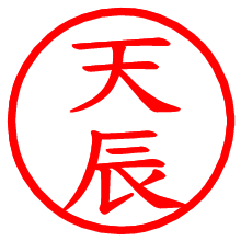 [朱肉の色]を選び、入力窓に“天辰”と入力して[生成]ボタンを押すと、印影が更新され、リンクから電子印鑑(デジタル印影)がダウンロードできます。 電子印鑑「天辰」の作り方文字表示が変なときや、文字バランスが悪いときは[字形切替]のチェックボックスでON/OFFを切り替え[生成]しなおしてください。 生成される画像は通常の印影「天辰.png」と、にじみを表現した少し太めの印影「天辰B.png」の背面透過PNG形式2種と、鮮明なPDF形式の印影「天辰.pdf」の計3種類です。 朱肉の微妙な色の違いを7色で表現しました。デフォルト(左端)は、JISが定めた朱肉の色のマンセル値(7.5R 5/14)をRGB値(217,66,54)に変換したものになっています。 「電子透かし」にチェックを入れて[生成]ボタンを押すと、タイムスタンプを電子透かしとして埋め込んだセキュアな電子印鑑が作れます。詳細は別ページの「タイムスタンプと電子透かし」でご覧ください。 天辰さんの日付印が作れます。「日付スタンプメーカー」は、社内向けの書類に利用されることの多い日付印(データ印)が無料で作れるWebアプリケーションです。中段に日付が入り、上段と下段は、ともに8文字まで文字が入ります。 ![]() 古代文字で落款印が作れます。「落款スタンプメーカー」で作品を引き立たせる落款印が作れます。