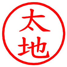 [朱肉の色]を選び、入力窓に“太地”と入力して[生成]ボタンを押すと、印影が更新され、リンクから電子印鑑(デジタル印影)がダウンロードできます。 電子印鑑「太地」の作り方文字表示が変なときや、文字バランスが悪いときは[字形切替]のチェックボックスでON/OFFを切り替え[生成]しなおしてください。 生成される画像は通常の印影「太地.png」と、にじみを表現した少し太めの印影「太地B.png」の背面透過PNG形式2種と、鮮明なPDF形式の印影「太地.pdf」の計3種類です。 朱肉の微妙な色の違いを7色で表現しました。デフォルト(左端)は、JISが定めた朱肉の色のマンセル値(7.5R 5/14)をRGB値(217,66,54)に変換したものになっています。 「電子透かし」にチェックを入れて[生成]ボタンを押すと、タイムスタンプを透かしとして埋め込んだセキュアな電子印鑑が作れます。詳細は別ページの「電子透かしとタイムスタンプ」でご覧ください。  太地さんの日付印が作れます。「日付スタンプメーカー」は、社内向けの書類に利用されることの多い日付印(データ印)が無料で作れるWebアプリケーションです。中段に日付が入り、上段と下段は、ともに8文字まで文字が入ります。 ![]()  古代文字で落款印が作れます。「落款スタンプメーカー」で作品を引き立たせる落款印が作れます。
