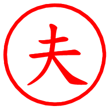 [朱肉の色]を選び、入力窓に“夫”と入力して[生成]ボタンを押すと、印影が更新され、リンクから電子印鑑(デジタル印影)がダウンロードできます。 電子印鑑「夫」の作り方文字表示が変なときや、文字バランスが悪いときは[字形切替]のチェックボックスでON/OFFを切り替え[生成]しなおしてください。 生成される画像は通常の印影「夫.png」と、にじみを表現した少し太めの印影「夫B.png」の背面透過PNG形式2種と、鮮明なPDF形式の印影「夫.pdf」の計3種類です。 朱肉の微妙な色の違いを7色で表現しました。デフォルト(左端)は、JISが定めた朱肉の色のマンセル値(7.5R 5/14)をRGB値(217,66,54)に変換したものになっています。 「電子透かし」にチェックを入れて[生成]ボタンを押すと、タイムスタンプを電子透かしとして埋め込んだセキュアな電子印鑑が作れます。詳細は別ページの「タイムスタンプと電子透かし」でご覧ください。 夫さんの日付印が作れます。「日付スタンプメーカー」は、社内向けの書類に利用されることの多い日付印(データ印)が無料で作れるWebアプリケーションです。中段に日付が入り、上段と下段は、ともに8文字まで文字が入ります。 ![]() 古代文字で落款印が作れます。「落款スタンプメーカー」で作品を引き立たせる落款印が作れます。