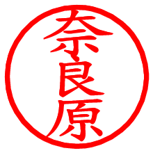 [朱肉の色]を選び、入力窓に“奈良原”と入力して[生成]ボタンを押すと、印影が更新され、リンクから電子印鑑(デジタル印影)がダウンロードできます。 電子印鑑「奈良原」の作り方文字表示が変なときや、文字バランスが悪いときは[字形切替]のチェックボックスでON/OFFを切り替え[生成]しなおしてください。 生成される画像は通常の印影「奈良原.png」と、にじみを表現した少し太めの印影「奈良原B.png」の背面透過PNG形式2種と、鮮明なPDF形式の印影「奈良原.pdf」の計3種類です。 朱肉の微妙な色の違いを7色で表現しました。デフォルト(左端)は、JISが定めた朱肉の色のマンセル値(7.5R 5/14)をRGB値(217,66,54)に変換したものになっています。 「電子透かし」にチェックを入れて[生成]ボタンを押すと、タイムスタンプを電子透かしとして埋め込んだセキュアな電子印鑑が作れます。詳細は別ページの「タイムスタンプと電子透かし」でご覧ください。 奈良原さんの日付印が作れます。「日付スタンプメーカー」は、社内向けの書類に利用されることの多い日付印(データ印)が無料で作れるWebアプリケーションです。中段に日付が入り、上段と下段は、ともに8文字まで文字が入ります。 ![]() 古代文字で落款印が作れます。「落款スタンプメーカー」で作品を引き立たせる落款印が作れます。