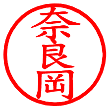 [朱肉の色]を選び、入力窓に“奈良岡”と入力して[生成]ボタンを押すと、印影が更新され、リンクから電子印鑑(デジタル印影)がダウンロードできます。 電子印鑑「奈良岡」の作り方文字表示が変なときや、文字バランスが悪いときは[字形切替]のチェックボックスでON/OFFを切り替え[生成]しなおしてください。 生成される画像は通常の印影「奈良岡.png」と、にじみを表現した少し太めの印影「奈良岡B.png」の背面透過PNG形式2種と、鮮明なPDF形式の印影「奈良岡.pdf」の計3種類です。 朱肉の微妙な色の違いを7色で表現しました。デフォルト(左端)は、JISが定めた朱肉の色のマンセル値(7.5R 5/14)をRGB値(217,66,54)に変換したものになっています。 「電子透かし」にチェックを入れて[生成]ボタンを押すと、タイムスタンプを透かしとして埋め込んだセキュアな電子印鑑が作れます。詳細は別ページの「電子透かしとタイムスタンプ」でご覧ください。 奈良岡さんの日付印が作れます。「日付スタンプメーカー」は、社内向けの書類に利用されることの多い日付印(データ印)が無料で作れるWebアプリケーションです。中段に日付が入り、上段と下段は、ともに8文字まで文字が入ります。 ![]() 古代文字で落款印が作れます。「落款スタンプメーカー」で作品を引き立たせる落款印が作れます。