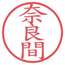 [朱肉の色]を選び、入力窓に“奈良間”と入力して[生成]ボタンを押すと、印影が更新され、リンクから電子印鑑(デジタル印影)がダウンロードできます。 電子印鑑「奈良間」の作り方文字表示が変なときや、文字バランスが悪いときは[字形切替]のチェックボックスでON/OFFを切り替え[生成]しなおしてください。 生成される画像は通常の印影「奈良間.png」と、にじみを表現した少し太めの印影「奈良間B.png」の背面透過PNG形式2種と、鮮明なPDF形式の印影「奈良間.pdf」の計3種類です。 朱肉の微妙な色の違いを7色で表現しました。デフォルト(左端)は、JISが定めた朱肉の色のマンセル値(7.5R 5/14)をRGB値(217,66,54)に変換したものになっています。 「電子透かし」にチェックを入れて[生成]ボタンを押すと、タイムスタンプを電子透かしとして埋め込んだセキュアな電子印鑑が作れます。詳細は別ページの「タイムスタンプと電子透かし」でご覧ください。 奈良間さんの日付印が作れます。「日付スタンプメーカー」は、社内向けの書類に利用されることの多い日付印(データ印)が無料で作れるWebアプリケーションです。中段に日付が入り、上段と下段は、ともに8文字まで文字が入ります。 ![]() 古代文字で落款印が作れます。「落款スタンプメーカー」で作品を引き立たせる落款印が作れます。