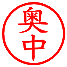[朱肉の色]を選び、入力窓に“奥中”と入力して[生成]ボタンを押すと、印影が更新され、リンクから電子印鑑(デジタル印影)がダウンロードできます。 電子印鑑「奥中」の作り方文字表示が変なときや、文字バランスが悪いときは[字形切替]のチェックボックスでON/OFFを切り替え[生成]しなおしてください。 生成される画像は通常の印影「奥中.png」と、にじみを表現した少し太めの印影「奥中B.png」の背面透過PNG形式2種と、鮮明なPDF形式の印影「奥中.pdf」の計3種類です。 朱肉の微妙な色の違いを7色で表現しました。デフォルト(左端)は、JISが定めた朱肉の色のマンセル値(7.5R 5/14)をRGB値(217,66,54)に変換したものになっています。 「電子透かし」にチェックを入れて[生成]ボタンを押すと、タイムスタンプを電子透かしとして埋め込んだセキュアな電子印鑑が作れます。詳細は別ページの「タイムスタンプと電子透かし」でご覧ください。 奥中さんの日付印が作れます。「日付スタンプメーカー」は、社内向けの書類に利用されることの多い日付印(データ印)が無料で作れるWebアプリケーションです。中段に日付が入り、上段と下段は、ともに8文字まで文字が入ります。 ![]() 古代文字で落款印が作れます。「落款スタンプメーカー」で作品を引き立たせる落款印が作れます。