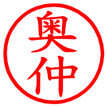[朱肉の色]を選び、入力窓に“奥仲”と入力して[生成]ボタンを押すと、印影が更新され、リンクから電子印鑑(デジタル印影)がダウンロードできます。 電子印鑑「奥仲」の作り方文字表示が変なときや、文字バランスが悪いときは[字形切替]のチェックボックスでON/OFFを切り替え[生成]しなおしてください。 生成される画像は通常の印影「奥仲.png」と、にじみを表現した少し太めの印影「奥仲B.png」の背面透過PNG形式2種と、鮮明なPDF形式の印影「奥仲.pdf」の計3種類です。 朱肉の微妙な色の違いを7色で表現しました。デフォルト(左端)は、JISが定めた朱肉の色のマンセル値(7.5R 5/14)をRGB値(217,66,54)に変換したものになっています。 「電子透かし」にチェックを入れて[生成]ボタンを押すと、タイムスタンプを電子透かしとして埋め込んだセキュアな電子印鑑が作れます。詳細は別ページの「タイムスタンプと電子透かし」でご覧ください。 奥仲さんの日付印が作れます。「日付スタンプメーカー」は、社内向けの書類に利用されることの多い日付印(データ印)が無料で作れるWebアプリケーションです。中段に日付が入り、上段と下段は、ともに8文字まで文字が入ります。 ![]() 古代文字で落款印が作れます。「落款スタンプメーカー」で作品を引き立たせる落款印が作れます。