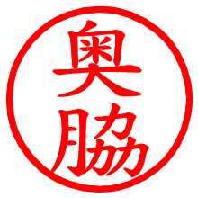 [朱肉の色]を選び、入力窓に“奥脇”と入力して[生成]ボタンを押すと、印影が更新され、リンクから電子印鑑(デジタル印影)がダウンロードできます。 電子印鑑「奥脇」の作り方文字表示が変なときや、文字バランスが悪いときは[字形切替]のチェックボックスでON/OFFを切り替え[生成]しなおしてください。 生成される画像は通常の印影「奥脇.png」と、にじみを表現した少し太めの印影「奥脇B.png」の背面透過PNG形式2種と、鮮明なPDF形式の印影「奥脇.pdf」の計3種類です。 朱肉の微妙な色の違いを7色で表現しました。デフォルト(左端)は、JISが定めた朱肉の色のマンセル値(7.5R 5/14)をRGB値(217,66,54)に変換したものになっています。 「電子透かし」にチェックを入れて[生成]ボタンを押すと、タイムスタンプを電子透かしとして埋め込んだセキュアな電子印鑑が作れます。詳細は別ページの「タイムスタンプと電子透かし」でご覧ください。 奥脇さんの日付印が作れます。「日付スタンプメーカー」は、社内向けの書類に利用されることの多い日付印(データ印)が無料で作れるWebアプリケーションです。中段に日付が入り、上段と下段は、ともに8文字まで文字が入ります。 ![]() 古代文字で落款印が作れます。「落款スタンプメーカー」で作品を引き立たせる落款印が作れます。