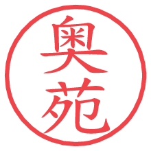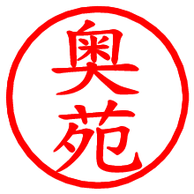 [朱肉の色]を選び、入力窓に“奥苑”と入力して[生成]ボタンを押すと、印影が更新され、リンクから電子印鑑(デジタル印影)がダウンロードできます。 電子印鑑「奥苑」の作り方文字表示が変なときや、文字バランスが悪いときは[字形切替]のチェックボックスでON/OFFを切り替え[生成]しなおしてください。 生成される画像は通常の印影「奥苑.png」と、にじみを表現した少し太めの印影「奥苑B.png」の背面透過PNG形式2種と、鮮明なPDF形式の印影「奥苑.pdf」の計3種類です。 朱肉の微妙な色の違いを7色で表現しました。デフォルト(左端)は、JISが定めた朱肉の色のマンセル値(7.5R 5/14)をRGB値(217,66,54)に変換したものになっています。 「電子透かし」にチェックを入れて[生成]ボタンを押すと、タイムスタンプを電子透かしとして埋め込んだセキュアな電子印鑑が作れます。詳細は別ページの「タイムスタンプと電子透かし」でご覧ください。 奥苑さんの日付印が作れます。「日付スタンプメーカー」は、社内向けの書類に利用されることの多い日付印(データ印)が無料で作れるWebアプリケーションです。中段に日付が入り、上段と下段は、ともに8文字まで文字が入ります。 ![]() 古代文字で落款印が作れます。「落款スタンプメーカー」で作品を引き立たせる落款印が作れます。