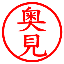 [朱肉の色]を選び、入力窓に“奥見”と入力して[生成]ボタンを押すと、印影が更新され、リンクから電子印鑑(デジタル印影)がダウンロードできます。 電子印鑑「奥見」の作り方文字表示が変なときや、文字バランスが悪いときは[字形切替]のチェックボックスでON/OFFを切り替え[生成]しなおしてください。 生成される画像は通常の印影「奥見.png」と、にじみを表現した少し太めの印影「奥見B.png」の背面透過PNG形式2種と、鮮明なPDF形式の印影「奥見.pdf」の計3種類です。 朱肉の微妙な色の違いを7色で表現しました。デフォルト(左端)は、JISが定めた朱肉の色のマンセル値(7.5R 5/14)をRGB値(217,66,54)に変換したものになっています。 「電子透かし」にチェックを入れて[生成]ボタンを押すと、タイムスタンプを電子透かしとして埋め込んだセキュアな電子印鑑が作れます。詳細は別ページの「タイムスタンプと電子透かし」でご覧ください。 奥見さんの日付印が作れます。「日付スタンプメーカー」は、社内向けの書類に利用されることの多い日付印(データ印)が無料で作れるWebアプリケーションです。中段に日付が入り、上段と下段は、ともに8文字まで文字が入ります。 ![]() 古代文字で落款印が作れます。「落款スタンプメーカー」で作品を引き立たせる落款印が作れます。
