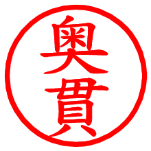 [朱肉の色]を選び、入力窓に“奥貫”と入力して[生成]ボタンを押すと、印影が更新され、リンクから電子印鑑(デジタル印影)がダウンロードできます。 電子印鑑「奥貫」の作り方文字表示が変なときや、文字バランスが悪いときは[字形切替]のチェックボックスでON/OFFを切り替え[生成]しなおしてください。 生成される画像は通常の印影「奥貫.png」と、にじみを表現した少し太めの印影「奥貫B.png」の背面透過PNG形式2種と、鮮明なPDF形式の印影「奥貫.pdf」の計3種類です。 朱肉の微妙な色の違いを7色で表現しました。デフォルト(左端)は、JISが定めた朱肉の色のマンセル値(7.5R 5/14)をRGB値(217,66,54)に変換したものになっています。 「電子透かし」にチェックを入れて[生成]ボタンを押すと、タイムスタンプを電子透かしとして埋め込んだセキュアな電子印鑑が作れます。詳細は別ページの「タイムスタンプと電子透かし」でご覧ください。 奥貫さんの日付印が作れます。「日付スタンプメーカー」は、社内向けの書類に利用されることの多い日付印(データ印)が無料で作れるWebアプリケーションです。中段に日付が入り、上段と下段は、ともに8文字まで文字が入ります。 ![]() 古代文字で落款印が作れます。「落款スタンプメーカー」で作品を引き立たせる落款印が作れます。