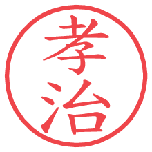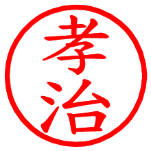 [朱肉の色]を選び、入力窓に“孝治”と入力して[生成]ボタンを押すと、印影が更新され、リンクから電子印鑑(デジタル印影)がダウンロードできます。 電子印鑑「孝治」の作り方文字表示が変なときや、文字バランスが悪いときは[字形切替]のチェックボックスでON/OFFを切り替え[生成]しなおしてください。 生成される画像は通常の印影「孝治.png」と、にじみを表現した少し太めの印影「孝治B.png」の背面透過PNG形式2種と、鮮明なPDF形式の印影「孝治.pdf」の計3種類です。 朱肉の微妙な色の違いを7色で表現しました。デフォルト(左端)は、JISが定めた朱肉の色のマンセル値(7.5R 5/14)をRGB値(217,66,54)に変換したものになっています。 「電子透かし」にチェックを入れて[生成]ボタンを押すと、タイムスタンプを電子透かしとして埋め込んだセキュアな電子印鑑が作れます。詳細は別ページの「タイムスタンプと電子透かし」でご覧ください。 孝治さんの日付印が作れます。「日付スタンプメーカー」は、社内向けの書類に利用されることの多い日付印(データ印)が無料で作れるWebアプリケーションです。中段に日付が入り、上段と下段は、ともに8文字まで文字が入ります。 ![]() 古代文字で落款印が作れます。「落款スタンプメーカー」で作品を引き立たせる落款印が作れます。
