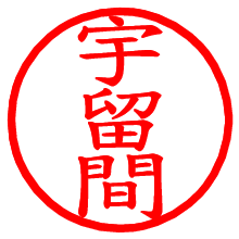 [朱肉の色]を選び、入力窓に“宇留間”と入力して[生成]ボタンを押すと、印影が更新され、リンクから電子印鑑(デジタル印影)がダウンロードできます。 電子印鑑「宇留間」の作り方文字表示が変なときや、文字バランスが悪いときは[字形切替]のチェックボックスでON/OFFを切り替え[生成]しなおしてください。 生成される画像は通常の印影「宇留間.png」と、にじみを表現した少し太めの印影「宇留間B.png」の背面透過PNG形式2種と、鮮明なPDF形式の印影「宇留間.pdf」の計3種類です。 朱肉の微妙な色の違いを7色で表現しました。デフォルト(左端)は、JISが定めた朱肉の色のマンセル値(7.5R 5/14)をRGB値(217,66,54)に変換したものになっています。 「電子透かし」にチェックを入れて[生成]ボタンを押すと、タイムスタンプを電子透かしとして埋め込んだセキュアな電子印鑑が作れます。詳細は別ページの「タイムスタンプと電子透かし」でご覧ください。 宇留間さんの日付印が作れます。「日付スタンプメーカー」は、社内向けの書類に利用されることの多い日付印(データ印)が無料で作れるWebアプリケーションです。中段に日付が入り、上段と下段は、ともに8文字まで文字が入ります。 ![]() 古代文字で落款印が作れます。「落款スタンプメーカー」で作品を引き立たせる落款印が作れます。