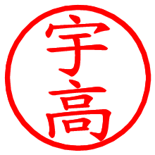 [朱肉の色]を選び、入力窓に“宇高”と入力して[生成]ボタンを押すと、印影が更新され、リンクから電子印鑑(デジタル印影)がダウンロードできます。 電子印鑑「宇高」の作り方文字表示が変なときや、文字バランスが悪いときは[字形切替]のチェックボックスでON/OFFを切り替え[生成]しなおしてください。 生成される画像は通常の印影「宇高.png」と、にじみを表現した少し太めの印影「宇高B.png」の背面透過PNG形式2種と、鮮明なPDF形式の印影「宇高.pdf」の計3種類です。 朱肉の微妙な色の違いを7色で表現しました。デフォルト(左端)は、JISが定めた朱肉の色のマンセル値(7.5R 5/14)をRGB値(217,66,54)に変換したものになっています。 「電子透かし」にチェックを入れて[生成]ボタンを押すと、タイムスタンプを透かしとして埋め込んだセキュアな電子印鑑が作れます。詳細は別ページの「電子透かしとタイムスタンプ」でご覧ください。 宇高さんの日付印が作れます。「日付スタンプメーカー」は、社内向けの書類に利用されることの多い日付印(データ印)が無料で作れるWebアプリケーションです。中段に日付が入り、上段と下段は、ともに8文字まで文字が入ります。 ![]() 古代文字で落款印が作れます。「落款スタンプメーカー」で作品を引き立たせる落款印が作れます。