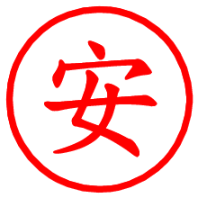 [朱肉の色]を選び、入力窓に“安”と入力して[生成]ボタンを押すと、印影が更新され、リンクから電子印鑑(デジタル印影)がダウンロードできます。 電子印鑑「安」の作り方文字表示が変なときや、文字バランスが悪いときは[字形切替]のチェックボックスでON/OFFを切り替え[生成]しなおしてください。 生成される画像は通常の印影「安.png」と、にじみを表現した少し太めの印影「安B.png」の背面透過PNG形式2種と、鮮明なPDF形式の印影「安.pdf」の計3種類です。 朱肉の微妙な色の違いを7色で表現しました。デフォルト(左端)は、JISが定めた朱肉の色のマンセル値(7.5R 5/14)をRGB値(217,66,54)に変換したものになっています。 「電子透かし」にチェックを入れて[生成]ボタンを押すと、タイムスタンプを透かしとして埋め込んだセキュアな電子印鑑が作れます。詳細は別ページの「電子透かしとタイムスタンプ」でご覧ください。  安さんの日付印が作れます。「日付スタンプメーカー」は、社内向けの書類に利用されることの多い日付印(データ印)が無料で作れるWebアプリケーションです。 中段に日付が入り、上段と下段は、ともに8文字まで文字が入ります。   古代文字で落款印が作れます。「落款スタンプメーカー」で作品を引き立たせる落款印が作れます。  なりきり書道 「落款スタンプメーカー」で作成した落款印の全体的な配置バランスの確認にご利用いただけます。デザインのワンポイントやラインスタンプ等にもお使いください。  遊び心ある安さんの角印はいかが? 絵文字が使えてLINEスタンプや年賀状にも使える消しゴムはんこ風の電子印鑑が作れます。  画像スタンプメーカーは、猫派の方はもちろん。犬派の方にもおすすめしたいペットなどのお気に入りの画像とかわいいタッチの文字が入るほっこりしたスタンプです。 マイスタンプメーカーとは法的な電子印鑑にはあたりませんので三文判的な位置付けでご利用ください。 | ||