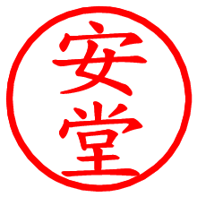 [朱肉の色]を選び、入力窓に“安堂”と入力して[生成]ボタンを押すと、印影が更新され、リンクから電子印鑑(デジタル印影)がダウンロードできます。 電子印鑑「安堂」の作り方文字表示が変なときや、文字バランスが悪いときは[字形切替]のチェックボックスでON/OFFを切り替え[生成]しなおしてください。 生成される画像は通常の印影「安堂.png」と、にじみを表現した少し太めの印影「安堂B.png」の背面透過PNG形式2種と、鮮明なPDF形式の印影「安堂.pdf」の計3種類です。 朱肉の微妙な色の違いを7色で表現しました。デフォルト(左端)は、JISが定めた朱肉の色のマンセル値(7.5R 5/14)をRGB値(217,66,54)に変換したものになっています。 「電子透かし」にチェックを入れて[生成]ボタンを押すと、タイムスタンプを電子透かしとして埋め込んだセキュアな電子印鑑が作れます。詳細は別ページの「タイムスタンプと電子透かし」でご覧ください。 安堂さんの日付印が作れます。「日付スタンプメーカー」は、社内向けの書類に利用されることの多い日付印(データ印)が無料で作れるWebアプリケーションです。中段に日付が入り、上段と下段は、ともに8文字まで文字が入ります。 ![]() 古代文字で落款印が作れます。「落款スタンプメーカー」で作品を引き立たせる落款印が作れます。