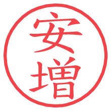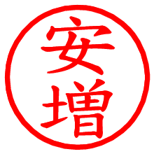 [朱肉の色]を選び、入力窓に“安増”と入力して[生成]ボタンを押すと、印影が更新され、リンクから電子印鑑(デジタル印影)がダウンロードできます。 電子印鑑「安増」の作り方文字表示が変なときや、文字バランスが悪いときは[字形切替]のチェックボックスでON/OFFを切り替え[生成]しなおしてください。 生成される画像は通常の印影「安増.png」と、にじみを表現した少し太めの印影「安増B.png」の背面透過PNG形式2種と、鮮明なPDF形式の印影「安増.pdf」の計3種類です。 朱肉の微妙な色の違いを7色で表現しました。デフォルト(左端)は、JISが定めた朱肉の色のマンセル値(7.5R 5/14)をRGB値(217,66,54)に変換したものになっています。 「電子透かし」にチェックを入れて[生成]ボタンを押すと、タイムスタンプを電子透かしとして埋め込んだセキュアな電子印鑑が作れます。詳細は別ページの「タイムスタンプと電子透かし」でご覧ください。 安増さんの日付印が作れます。「日付スタンプメーカー」は、社内向けの書類に利用されることの多い日付印(データ印)が無料で作れるWebアプリケーションです。中段に日付が入り、上段と下段は、ともに8文字まで文字が入ります。 ![]() 古代文字で落款印が作れます。「落款スタンプメーカー」で作品を引き立たせる落款印が作れます。