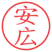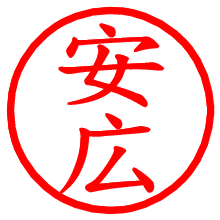 [朱肉の色]を選び、入力窓に“安広”と入力して[生成]ボタンを押すと、印影が更新され、リンクから電子印鑑(デジタル印影)がダウンロードできます。 電子印鑑「安広」の作り方文字表示が変なときや、文字バランスが悪いときは[字形切替]のチェックボックスでON/OFFを切り替え[生成]しなおしてください。 生成される画像は通常の印影「安広.png」と、にじみを表現した少し太めの印影「安広B.png」の背面透過PNG形式2種と、鮮明なPDF形式の印影「安広.pdf」の計3種類です。 朱肉の微妙な色の違いを7色で表現しました。デフォルト(左端)は、JISが定めた朱肉の色のマンセル値(7.5R 5/14)をRGB値(217,66,54)に変換したものになっています。 「電子透かし」にチェックを入れて[生成]ボタンを押すと、タイムスタンプを電子透かしとして埋め込んだセキュアな電子印鑑が作れます。詳細は別ページの「タイムスタンプと電子透かし」でご覧ください。 安広さんの日付印が作れます。「日付スタンプメーカー」は、社内向けの書類に利用されることの多い日付印(データ印)が無料で作れるWebアプリケーションです。中段に日付が入り、上段と下段は、ともに8文字まで文字が入ります。 ![]() 古代文字で落款印が作れます。「落款スタンプメーカー」で作品を引き立たせる落款印が作れます。