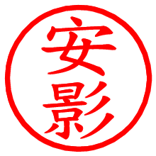 [朱肉の色]を選び、入力窓に“安影”と入力して[生成]ボタンを押すと、印影が更新され、リンクから電子印鑑(デジタル印影)がダウンロードできます。 電子印鑑「安影」の作り方文字表示が変なときや、文字バランスが悪いときは[字形切替]のチェックボックスでON/OFFを切り替え[生成]しなおしてください。 生成される画像は通常の印影「安影.png」と、にじみを表現した少し太めの印影「安影B.png」の背面透過PNG形式2種と、鮮明なPDF形式の印影「安影.pdf」の計3種類です。 朱肉の微妙な色の違いを7色で表現しました。デフォルト(左端)は、JISが定めた朱肉の色のマンセル値(7.5R 5/14)をRGB値(217,66,54)に変換したものになっています。 「電子透かし」にチェックを入れて[生成]ボタンを押すと、タイムスタンプを透かしとして埋め込んだセキュアな電子印鑑が作れます。詳細は別ページの「電子透かしとタイムスタンプ」でご覧ください。 安影さんの日付印が作れます。「日付スタンプメーカー」は、社内向けの書類に利用されることの多い日付印(データ印)が無料で作れるWebアプリケーションです。中段に日付が入り、上段と下段は、ともに8文字まで文字が入ります。 ![]() 古代文字で落款印が作れます。「落款スタンプメーカー」で作品を引き立たせる落款印が作れます。