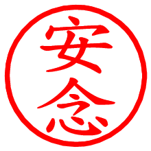 [朱肉の色]を選び、入力窓に“安念”と入力して[生成]ボタンを押すと、印影が更新され、リンクから電子印鑑(デジタル印影)がダウンロードできます。 電子印鑑「安念」の作り方文字表示が変なときや、文字バランスが悪いときは[字形切替]のチェックボックスでON/OFFを切り替え[生成]しなおしてください。 生成される画像は通常の印影「安念.png」と、にじみを表現した少し太めの印影「安念B.png」の背面透過PNG形式2種と、鮮明なPDF形式の印影「安念.pdf」の計3種類です。 朱肉の微妙な色の違いを7色で表現しました。デフォルト(左端)は、JISが定めた朱肉の色のマンセル値(7.5R 5/14)をRGB値(217,66,54)に変換したものになっています。 「電子透かし」にチェックを入れて[生成]ボタンを押すと、タイムスタンプを電子透かしとして埋め込んだセキュアな電子印鑑が作れます。詳細は別ページの「タイムスタンプと電子透かし」でご覧ください。 安念さんの日付印が作れます。「日付スタンプメーカー」は、社内向けの書類に利用されることの多い日付印(データ印)が無料で作れるWebアプリケーションです。中段に日付が入り、上段と下段は、ともに8文字まで文字が入ります。 ![]() 古代文字で落款印が作れます。「落款スタンプメーカー」で作品を引き立たせる落款印が作れます。