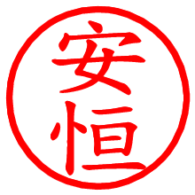[朱肉の色]を選び、入力窓に“安恒”と入力して[生成]ボタンを押すと、印影が更新され、リンクから電子印鑑(デジタル印影)がダウンロードできます。 電子印鑑「安恒」の作り方文字表示が変なときや、文字バランスが悪いときは[字形切替]のチェックボックスでON/OFFを切り替え[生成]しなおしてください。 生成される画像は通常の印影「安恒.png」と、にじみを表現した少し太めの印影「安恒B.png」の背面透過PNG形式2種と、鮮明なPDF形式の印影「安恒.pdf」の計3種類です。 朱肉の微妙な色の違いを7色で表現しました。デフォルト(左端)は、JISが定めた朱肉の色のマンセル値(7.5R 5/14)をRGB値(217,66,54)に変換したものになっています。 「電子透かし」にチェックを入れて[生成]ボタンを押すと、タイムスタンプを電子透かしとして埋め込んだセキュアな電子印鑑が作れます。詳細は別ページの「タイムスタンプと電子透かし」でご覧ください。 安恒さんの日付印が作れます。「日付スタンプメーカー」は、社内向けの書類に利用されることの多い日付印(データ印)が無料で作れるWebアプリケーションです。中段に日付が入り、上段と下段は、ともに8文字まで文字が入ります。 ![]() 古代文字で落款印が作れます。「落款スタンプメーカー」で作品を引き立たせる落款印が作れます。