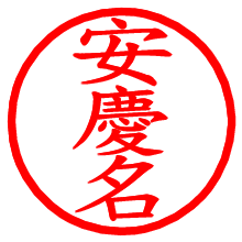 [朱肉の色]を選び、入力窓に“安慶名”と入力して[生成]ボタンを押すと、印影が更新され、リンクから電子印鑑(デジタル印影)がダウンロードできます。 電子印鑑「安慶名」の作り方文字表示が変なときや、文字バランスが悪いときは[字形切替]のチェックボックスでON/OFFを切り替え[生成]しなおしてください。 生成される画像は通常の印影「安慶名.png」と、にじみを表現した少し太めの印影「安慶名B.png」の背面透過PNG形式2種と、鮮明なPDF形式の印影「安慶名.pdf」の計3種類です。 朱肉の微妙な色の違いを7色で表現しました。デフォルト(左端)は、JISが定めた朱肉の色のマンセル値(7.5R 5/14)をRGB値(217,66,54)に変換したものになっています。 「電子透かし」にチェックを入れて[生成]ボタンを押すと、タイムスタンプを電子透かしとして埋め込んだセキュアな電子印鑑が作れます。詳細は別ページの「タイムスタンプと電子透かし」でご覧ください。 安慶名さんの日付印が作れます。「日付スタンプメーカー」は、社内向けの書類に利用されることの多い日付印(データ印)が無料で作れるWebアプリケーションです。中段に日付が入り、上段と下段は、ともに8文字まで文字が入ります。 ![]() 古代文字で落款印が作れます。「落款スタンプメーカー」で作品を引き立たせる落款印が作れます。