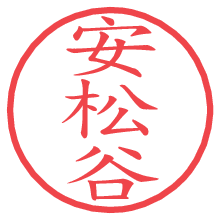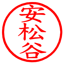 [朱肉の色]を選び、入力窓に“安松谷”と入力して[生成]ボタンを押すと、印影が更新され、リンクから電子印鑑(デジタル印影)がダウンロードできます。 電子印鑑「安松谷」の作り方文字表示が変なときや、文字バランスが悪いときは[字形切替]のチェックボックスでON/OFFを切り替え[生成]しなおしてください。 生成される画像は通常の印影「安松谷.png」と、にじみを表現した少し太めの印影「安松谷B.png」の背面透過PNG形式2種と、鮮明なPDF形式の印影「安松谷.pdf」の計3種類です。 朱肉の微妙な色の違いを7色で表現しました。デフォルト(左端)は、JISが定めた朱肉の色のマンセル値(7.5R 5/14)をRGB値(217,66,54)に変換したものになっています。 「電子透かし」にチェックを入れて[生成]ボタンを押すと、タイムスタンプを電子透かしとして埋め込んだセキュアな電子印鑑が作れます。詳細は別ページの「タイムスタンプと電子透かし」でご覧ください。 安松谷さんの日付印が作れます。「日付スタンプメーカー」は、社内向けの書類に利用されることの多い日付印(データ印)が無料で作れるWebアプリケーションです。中段に日付が入り、上段と下段は、ともに8文字まで文字が入ります。 ![]() 古代文字で落款印が作れます。「落款スタンプメーカー」で作品を引き立たせる落款印が作れます。