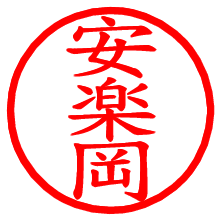 [朱肉の色]を選び、入力窓に“安楽岡”と入力して[生成]ボタンを押すと、印影が更新され、リンクから電子印鑑(デジタル印影)がダウンロードできます。 電子印鑑「安楽岡」の作り方文字表示が変なときや、文字バランスが悪いときは[字形切替]のチェックボックスでON/OFFを切り替え[生成]しなおしてください。 生成される画像は通常の印影「安楽岡.png」と、にじみを表現した少し太めの印影「安楽岡B.png」の背面透過PNG形式2種と、鮮明なPDF形式の印影「安楽岡.pdf」の計3種類です。 朱肉の微妙な色の違いを7色で表現しました。デフォルト(左端)は、JISが定めた朱肉の色のマンセル値(7.5R 5/14)をRGB値(217,66,54)に変換したものになっています。 「電子透かし」にチェックを入れて[生成]ボタンを押すと、タイムスタンプを電子透かしとして埋め込んだセキュアな電子印鑑が作れます。詳細は別ページの「タイムスタンプと電子透かし」でご覧ください。 安楽岡さんの日付印が作れます。「日付スタンプメーカー」は、社内向けの書類に利用されることの多い日付印(データ印)が無料で作れるWebアプリケーションです。中段に日付が入り、上段と下段は、ともに8文字まで文字が入ります。 ![]() 古代文字で落款印が作れます。「落款スタンプメーカー」で作品を引き立たせる落款印が作れます。