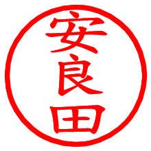 [朱肉の色]を選び、入力窓に“安良田”と入力して[生成]ボタンを押すと、印影が更新され、リンクから電子印鑑(デジタル印影)がダウンロードできます。 電子印鑑「安良田」の作り方文字表示が変なときや、文字バランスが悪いときは[字形切替]のチェックボックスでON/OFFを切り替え[生成]しなおしてください。 生成される画像は通常の印影「安良田.png」と、にじみを表現した少し太めの印影「安良田B.png」の背面透過PNG形式2種と、鮮明なPDF形式の印影「安良田.pdf」の計3種類です。 朱肉の微妙な色の違いを7色で表現しました。デフォルト(左端)は、JISが定めた朱肉の色のマンセル値(7.5R 5/14)をRGB値(217,66,54)に変換したものになっています。 「電子透かし」にチェックを入れて[生成]ボタンを押すと、タイムスタンプを電子透かしとして埋め込んだセキュアな電子印鑑が作れます。詳細は別ページの「タイムスタンプと電子透かし」でご覧ください。 安良田さんの日付印が作れます。「日付スタンプメーカー」は、社内向けの書類に利用されることの多い日付印(データ印)が無料で作れるWebアプリケーションです。中段に日付が入り、上段と下段は、ともに8文字まで文字が入ります。 ![]() 古代文字で落款印が作れます。「落款スタンプメーカー」で作品を引き立たせる落款印が作れます。
