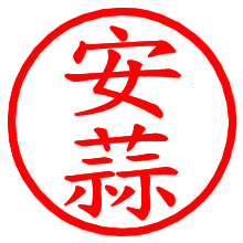[朱肉の色]を選び、入力窓に“安蒜”と入力して[生成]ボタンを押すと、印影が更新され、リンクから電子印鑑(デジタル印影)がダウンロードできます。 電子印鑑「安蒜」の作り方文字表示が変なときや、文字バランスが悪いときは[字形切替]のチェックボックスでON/OFFを切り替え[生成]しなおしてください。 生成される画像は通常の印影「安蒜.png」と、にじみを表現した少し太めの印影「安蒜B.png」の背面透過PNG形式2種と、鮮明なPDF形式の印影「安蒜.pdf」の計3種類です。 朱肉の微妙な色の違いを7色で表現しました。デフォルト(左端)は、JISが定めた朱肉の色のマンセル値(7.5R 5/14)をRGB値(217,66,54)に変換したものになっています。 「電子透かし」にチェックを入れて[生成]ボタンを押すと、タイムスタンプを電子透かしとして埋め込んだセキュアな電子印鑑が作れます。詳細は別ページの「タイムスタンプと電子透かし」でご覧ください。 安蒜さんの日付印が作れます。「日付スタンプメーカー」は、社内向けの書類に利用されることの多い日付印(データ印)が無料で作れるWebアプリケーションです。中段に日付が入り、上段と下段は、ともに8文字まで文字が入ります。 ![]() 古代文字で落款印が作れます。「落款スタンプメーカー」で作品を引き立たせる落款印が作れます。