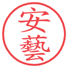 [朱肉の色]を選び、入力窓に“安藝”と入力して[生成]ボタンを押すと、印影が更新され、リンクから電子印鑑(デジタル印影)がダウンロードできます。 電子印鑑「安藝」の作り方文字表示が変なときや、文字バランスが悪いときは[字形切替]のチェックボックスでON/OFFを切り替え[生成]しなおしてください。 生成される画像は通常の印影「安藝.png」と、にじみを表現した少し太めの印影「安藝B.png」の背面透過PNG形式2種と、鮮明なPDF形式の印影「安藝.pdf」の計3種類です。 朱肉の微妙な色の違いを7色で表現しました。デフォルト(左端)は、JISが定めた朱肉の色のマンセル値(7.5R 5/14)をRGB値(217,66,54)に変換したものになっています。 「電子透かし」にチェックを入れて[生成]ボタンを押すと、タイムスタンプを電子透かしとして埋め込んだセキュアな電子印鑑が作れます。詳細は別ページの「タイムスタンプと電子透かし」でご覧ください。 安藝さんの日付印が作れます。「日付スタンプメーカー」は、社内向けの書類に利用されることの多い日付印(データ印)が無料で作れるWebアプリケーションです。中段に日付が入り、上段と下段は、ともに8文字まで文字が入ります。 ![]() 古代文字で落款印が作れます。「落款スタンプメーカー」で作品を引き立たせる落款印が作れます。