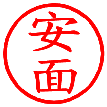 [朱肉の色]を選び、入力窓に“安面”と入力して[生成]ボタンを押すと、印影が更新され、リンクから電子印鑑(デジタル印影)がダウンロードできます。 電子印鑑「安面」の作り方文字表示が変なときや、文字バランスが悪いときは[字形切替]のチェックボックスでON/OFFを切り替え[生成]しなおしてください。 生成される画像は通常の印影「安面.png」と、にじみを表現した少し太めの印影「安面B.png」の背面透過PNG形式2種と、鮮明なPDF形式の印影「安面.pdf」の計3種類です。 朱肉の微妙な色の違いを7色で表現しました。デフォルト(左端)は、JISが定めた朱肉の色のマンセル値(7.5R 5/14)をRGB値(217,66,54)に変換したものになっています。 「電子透かし」にチェックを入れて[生成]ボタンを押すと、タイムスタンプを電子透かしとして埋め込んだセキュアな電子印鑑が作れます。詳細は別ページの「タイムスタンプと電子透かし」でご覧ください。 安面さんの日付印が作れます。「日付スタンプメーカー」は、社内向けの書類に利用されることの多い日付印(データ印)が無料で作れるWebアプリケーションです。中段に日付が入り、上段と下段は、ともに8文字まで文字が入ります。 ![]() 古代文字で落款印が作れます。「落款スタンプメーカー」で作品を引き立たせる落款印が作れます。