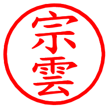 [朱肉の色]を選び、入力窓に“宗雲”と入力して[生成]ボタンを押すと、印影が更新され、リンクから電子印鑑(デジタル印影)がダウンロードできます。 電子印鑑「宗雲」の作り方文字表示が変なときや、文字バランスが悪いときは[字形切替]のチェックボックスでON/OFFを切り替え[生成]しなおしてください。 生成される画像は通常の印影「宗雲.png」と、にじみを表現した少し太めの印影「宗雲B.png」の背面透過PNG形式2種と、鮮明なPDF形式の印影「宗雲.pdf」の計3種類です。 朱肉の微妙な色の違いを7色で表現しました。デフォルト(左端)は、JISが定めた朱肉の色のマンセル値(7.5R 5/14)をRGB値(217,66,54)に変換したものになっています。 「電子透かし」にチェックを入れて[生成]ボタンを押すと、タイムスタンプを電子透かしとして埋め込んだセキュアな電子印鑑が作れます。詳細は別ページの「タイムスタンプと電子透かし」でご覧ください。 宗雲さんの日付印が作れます。「日付スタンプメーカー」は、社内向けの書類に利用されることの多い日付印(データ印)が無料で作れるWebアプリケーションです。中段に日付が入り、上段と下段は、ともに8文字まで文字が入ります。 ![]() 古代文字で落款印が作れます。「落款スタンプメーカー」で作品を引き立たせる落款印が作れます。