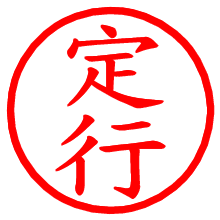 [朱肉の色]を選び、入力窓に“定行”と入力して[生成]ボタンを押すと、印影が更新され、リンクから電子印鑑(デジタル印影)がダウンロードできます。 電子印鑑「定行」の作り方文字表示が変なときや、文字バランスが悪いときは[字形切替]のチェックボックスでON/OFFを切り替え[生成]しなおしてください。 生成される画像は通常の印影「定行.png」と、にじみを表現した少し太めの印影「定行B.png」の背面透過PNG形式2種と、鮮明なPDF形式の印影「定行.pdf」の計3種類です。 朱肉の微妙な色の違いを7色で表現しました。デフォルト(左端)は、JISが定めた朱肉の色のマンセル値(7.5R 5/14)をRGB値(217,66,54)に変換したものになっています。 「電子透かし」にチェックを入れて[生成]ボタンを押すと、タイムスタンプを電子透かしとして埋め込んだセキュアな電子印鑑が作れます。詳細は別ページの「タイムスタンプと電子透かし」でご覧ください。 定行さんの日付印が作れます。「日付スタンプメーカー」は、社内向けの書類に利用されることの多い日付印(データ印)が無料で作れるWebアプリケーションです。中段に日付が入り、上段と下段は、ともに8文字まで文字が入ります。 ![]() 古代文字で落款印が作れます。「落款スタンプメーカー」で作品を引き立たせる落款印が作れます。