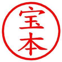 [朱肉の色]を選び、入力窓に“宝本”と入力して[生成]ボタンを押すと、印影が更新され、リンクから電子印鑑(デジタル印影)がダウンロードできます。 電子印鑑「宝本」の作り方文字表示が変なときや、文字バランスが悪いときは[字形切替]のチェックボックスでON/OFFを切り替え[生成]しなおしてください。 生成される画像は通常の印影「宝本.png」と、にじみを表現した少し太めの印影「宝本B.png」の背面透過PNG形式2種と、鮮明なPDF形式の印影「宝本.pdf」の計3種類です。 朱肉の微妙な色の違いを7色で表現しました。デフォルト(左端)は、JISが定めた朱肉の色のマンセル値(7.5R 5/14)をRGB値(217,66,54)に変換したものになっています。 「電子透かし」にチェックを入れて[生成]ボタンを押すと、タイムスタンプを電子透かしとして埋め込んだセキュアな電子印鑑が作れます。詳細は別ページの「タイムスタンプと電子透かし」でご覧ください。 宝本さんの日付印が作れます。「日付スタンプメーカー」は、社内向けの書類に利用されることの多い日付印(データ印)が無料で作れるWebアプリケーションです。中段に日付が入り、上段と下段は、ともに8文字まで文字が入ります。 ![]() 古代文字で落款印が作れます。「落款スタンプメーカー」で作品を引き立たせる落款印が作れます。