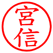 [朱肉の色]を選び、入力窓に“宮信”と入力して[生成]ボタンを押すと、印影が更新され、リンクから電子印鑑(デジタル印影)がダウンロードできます。 電子印鑑「宮信」の作り方文字表示が変なときや、文字バランスが悪いときは[字形切替]のチェックボックスでON/OFFを切り替え[生成]しなおしてください。 生成される画像は通常の印影「宮信.png」と、にじみを表現した少し太めの印影「宮信B.png」の背面透過PNG形式2種と、鮮明なPDF形式の印影「宮信.pdf」の計3種類です。 朱肉の微妙な色の違いを7色で表現しました。デフォルト(左端)は、JISが定めた朱肉の色のマンセル値(7.5R 5/14)をRGB値(217,66,54)に変換したものになっています。 「電子透かし」にチェックを入れて[生成]ボタンを押すと、タイムスタンプを電子透かしとして埋め込んだセキュアな電子印鑑が作れます。詳細は別ページの「タイムスタンプと電子透かし」でご覧ください。 宮信さんの日付印が作れます。「日付スタンプメーカー」は、社内向けの書類に利用されることの多い日付印(データ印)が無料で作れるWebアプリケーションです。中段に日付が入り、上段と下段は、ともに8文字まで文字が入ります。 ![]() 古代文字で落款印が作れます。「落款スタンプメーカー」で作品を引き立たせる落款印が作れます。