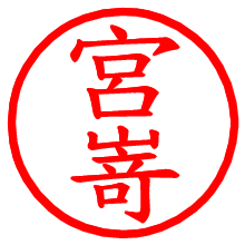 [朱肉の色]を選び、入力窓に“宮嵜”と入力して[生成]ボタンを押すと、印影が更新され、リンクから電子印鑑(デジタル印影)がダウンロードできます。 電子印鑑「宮嵜」の作り方文字表示が変なときや、文字バランスが悪いときは[字形切替]のチェックボックスでON/OFFを切り替え[生成]しなおしてください。 生成される画像は通常の印影「宮嵜.png」と、にじみを表現した少し太めの印影「宮嵜B.png」の背面透過PNG形式2種と、鮮明なPDF形式の印影「宮嵜.pdf」の計3種類です。 朱肉の微妙な色の違いを7色で表現しました。デフォルト(左端)は、JISが定めた朱肉の色のマンセル値(7.5R 5/14)をRGB値(217,66,54)に変換したものになっています。 「電子透かし」にチェックを入れて[生成]ボタンを押すと、タイムスタンプを電子透かしとして埋め込んだセキュアな電子印鑑が作れます。詳細は別ページの「タイムスタンプと電子透かし」でご覧ください。 宮嵜さんの日付印が作れます。「日付スタンプメーカー」は、社内向けの書類に利用されることの多い日付印(データ印)が無料で作れるWebアプリケーションです。中段に日付が入り、上段と下段は、ともに8文字まで文字が入ります。 ![]() 古代文字で落款印が作れます。「落款スタンプメーカー」で作品を引き立たせる落款印が作れます。