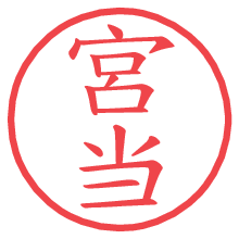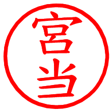 [朱肉の色]を選び、入力窓に“宮当”と入力して[生成]ボタンを押すと、印影が更新され、リンクから電子印鑑(デジタル印影)がダウンロードできます。 電子印鑑「宮当」の作り方文字表示が変なときや、文字バランスが悪いときは[字形切替]のチェックボックスでON/OFFを切り替え[生成]しなおしてください。 生成される画像は通常の印影「宮当.png」と、にじみを表現した少し太めの印影「宮当B.png」の背面透過PNG形式2種と、鮮明なPDF形式の印影「宮当.pdf」の計3種類です。 朱肉の微妙な色の違いを7色で表現しました。デフォルト(左端)は、JISが定めた朱肉の色のマンセル値(7.5R 5/14)をRGB値(217,66,54)に変換したものになっています。 「電子透かし」にチェックを入れて[生成]ボタンを押すと、タイムスタンプを電子透かしとして埋め込んだセキュアな電子印鑑が作れます。詳細は別ページの「タイムスタンプと電子透かし」でご覧ください。 宮当さんの日付印が作れます。「日付スタンプメーカー」は、社内向けの書類に利用されることの多い日付印(データ印)が無料で作れるWebアプリケーションです。中段に日付が入り、上段と下段は、ともに8文字まで文字が入ります。 ![]() 古代文字で落款印が作れます。「落款スタンプメーカー」で作品を引き立たせる落款印が作れます。