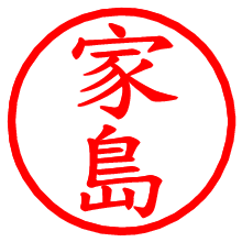 [朱肉の色]を選び、入力窓に“家島”と入力して[生成]ボタンを押すと、印影が更新され、リンクから電子印鑑(デジタル印影)がダウンロードできます。 電子印鑑「家島」の作り方文字表示が変なときや、文字バランスが悪いときは[字形切替]のチェックボックスでON/OFFを切り替え[生成]しなおしてください。 生成される画像は通常の印影「家島.png」と、にじみを表現した少し太めの印影「家島B.png」の背面透過PNG形式2種と、鮮明なPDF形式の印影「家島.pdf」の計3種類です。 朱肉の微妙な色の違いを7色で表現しました。デフォルト(左端)は、JISが定めた朱肉の色のマンセル値(7.5R 5/14)をRGB値(217,66,54)に変換したものになっています。 「電子透かし」にチェックを入れて[生成]ボタンを押すと、タイムスタンプを電子透かしとして埋め込んだセキュアな電子印鑑が作れます。詳細は別ページの「タイムスタンプと電子透かし」でご覧ください。 家島さんの日付印が作れます。「日付スタンプメーカー」は、社内向けの書類に利用されることの多い日付印(データ印)が無料で作れるWebアプリケーションです。中段に日付が入り、上段と下段は、ともに8文字まで文字が入ります。 ![]() 古代文字で落款印が作れます。「落款スタンプメーカー」で作品を引き立たせる落款印が作れます。